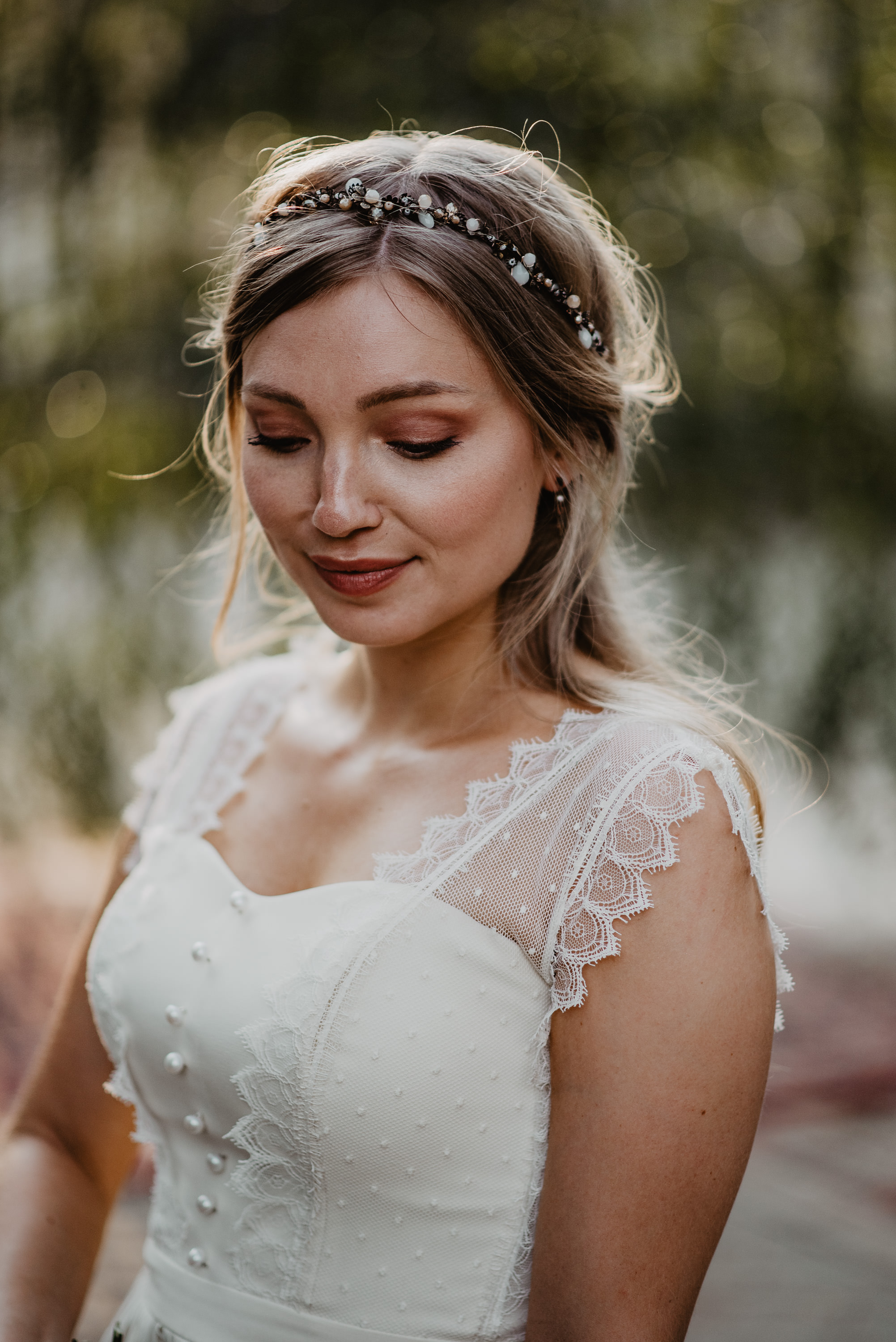 Praxis-Tipp: Probiere deinen Kopfschmuck zusammen mit deiner Frisur an, halte den Kopf leicht geneigt oder die Haare locker – so sitzt alles bequem und wirkt auf Fotos traumhaft. Genau diese Tipps berücksichtige ich bei jedem individuell gefertigten Stück.